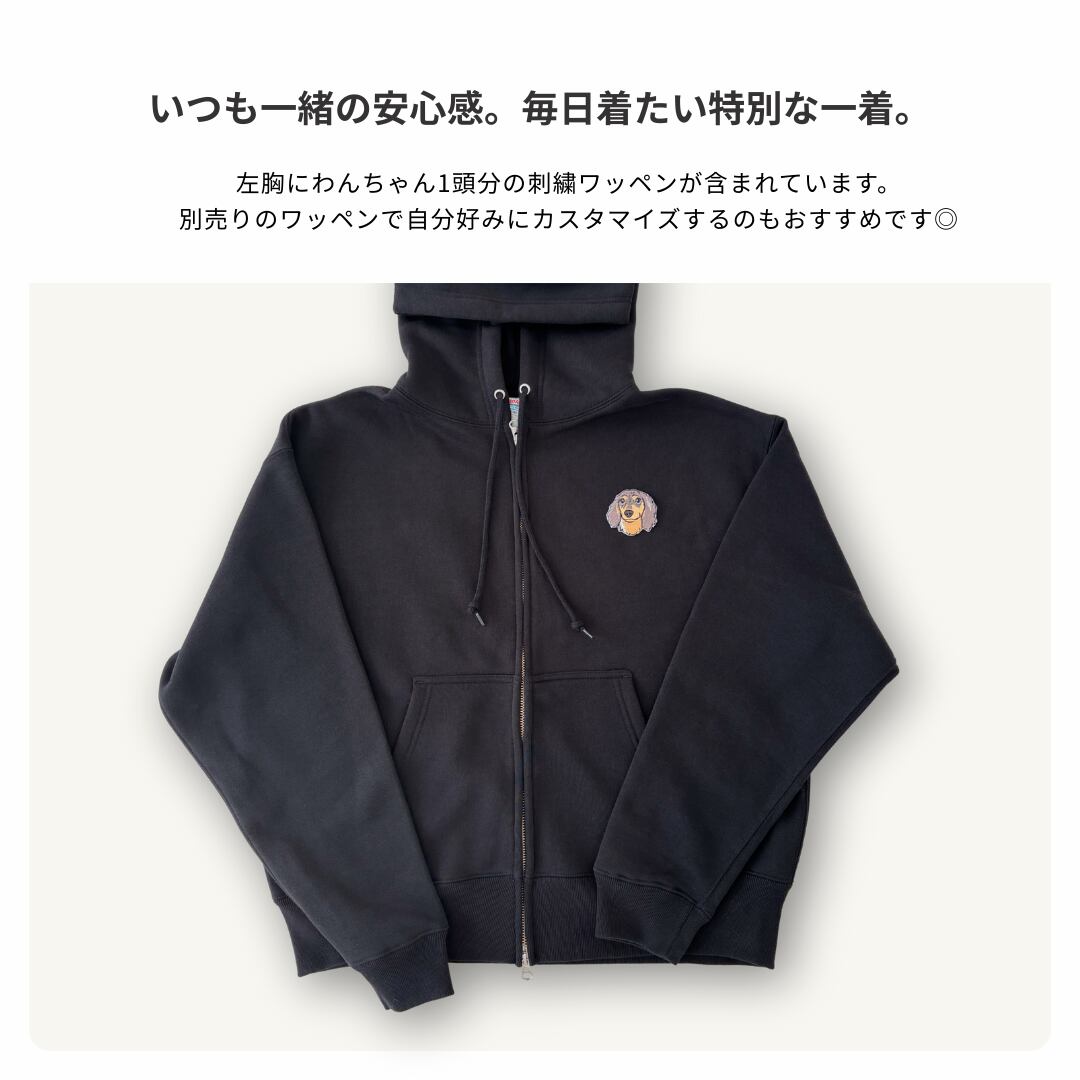 【ティアミーク】うちの子刺繍ワッペンダブルZIPパーカー|トレンドも愛犬愛も叶える大人のパーカー|リアルでかわいい犬の刺繍|裏起毛